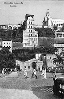 Há de se reparar à direita da torre a encosta da Ladeira da Montanha. Sua base foi perfurada, a fim de alcançar a parte baixa da cidade. Também deve ser notada uma passarela no alto, dando acesso à Praça Municipal. Em 1920 o Elevador da Conceição tinha o seguinte aspecto em foto magistral: